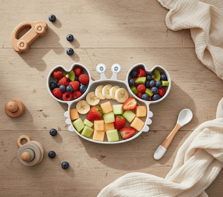 • Assiette Bébé Antidérapante en Silicone | Forme Crabe à Compartiments - Kiabebe